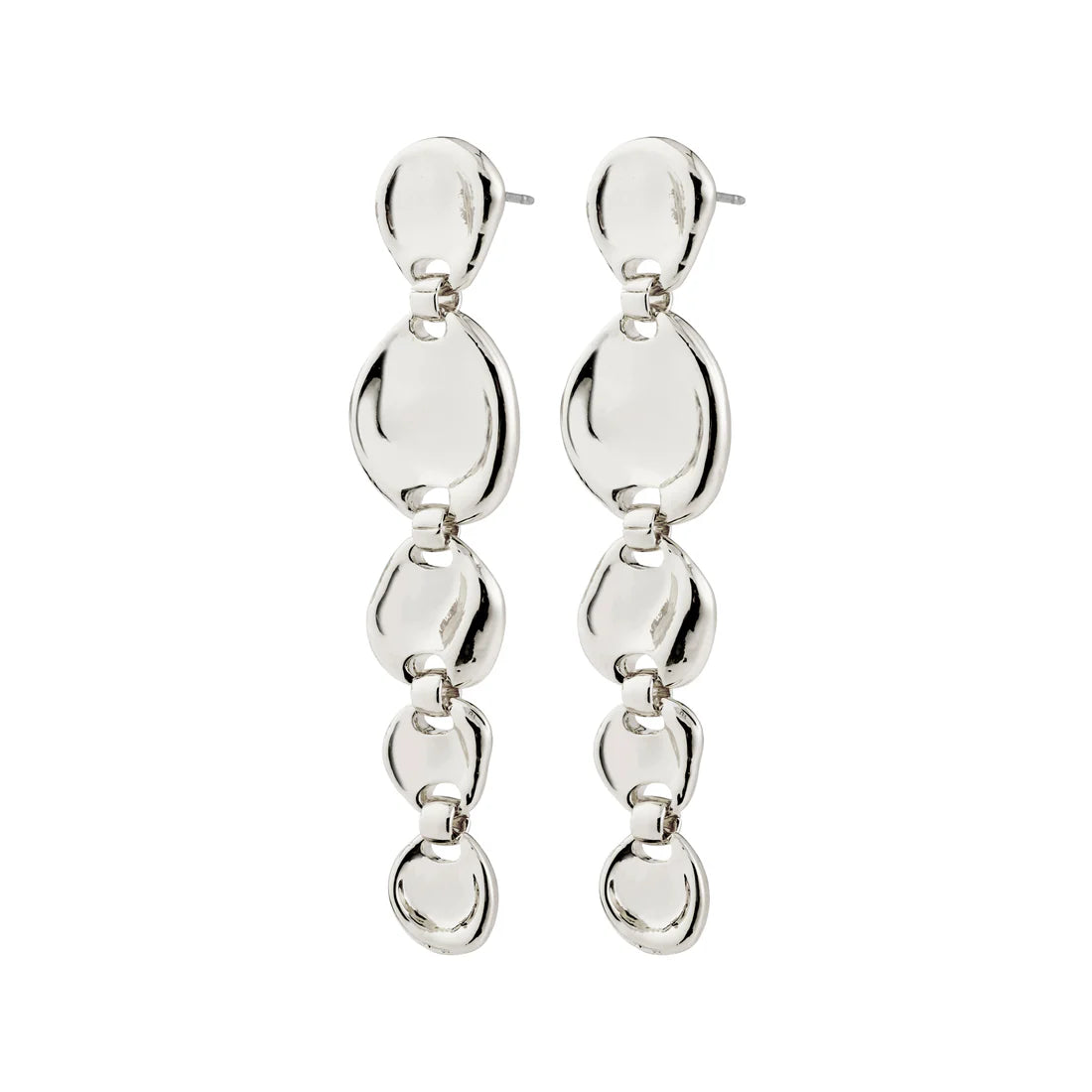 The gold-plated or silver-plated SPARKLE earrings from Pilgrim are your next-level party accessories. Long, movable pendants give your look a cool vintage edge, while the earrings' uneven surface plays with the light and creates a natural sparkle. Perfect for both glam moments and an effortless everyday look that needs a classy touch-up. Style with a sleek updo and a blazer for the ultimate mix of chic and edgy. Made from 99% recycled materials – sparkle with care for the planet.