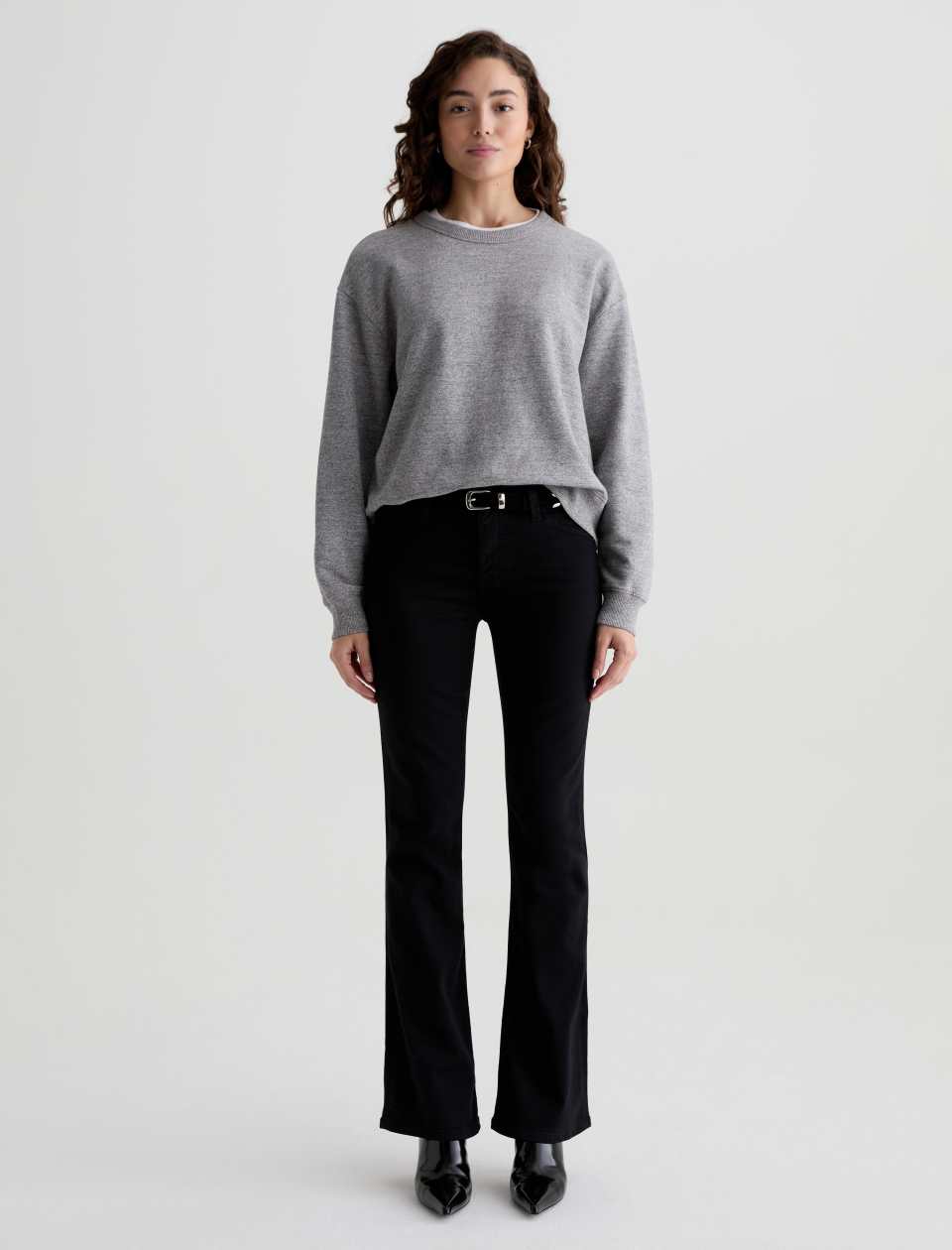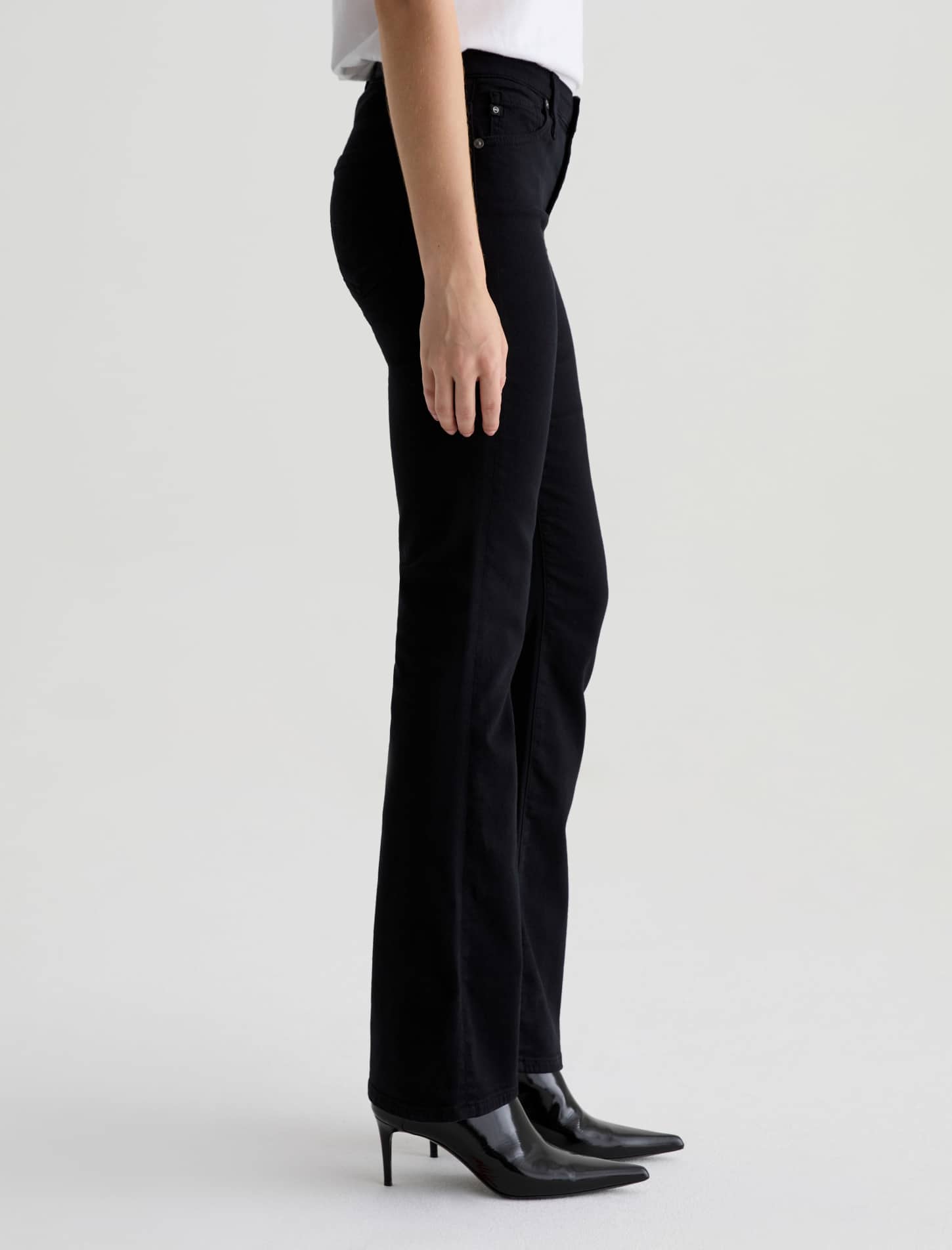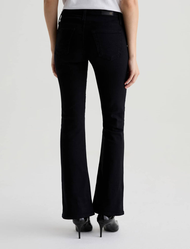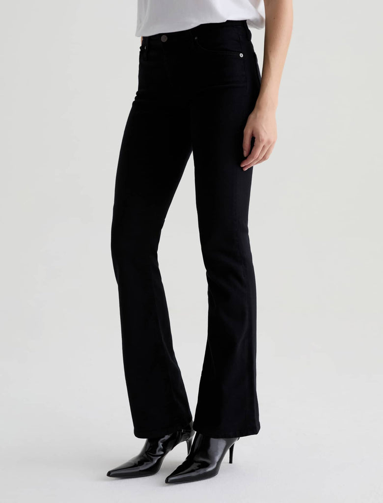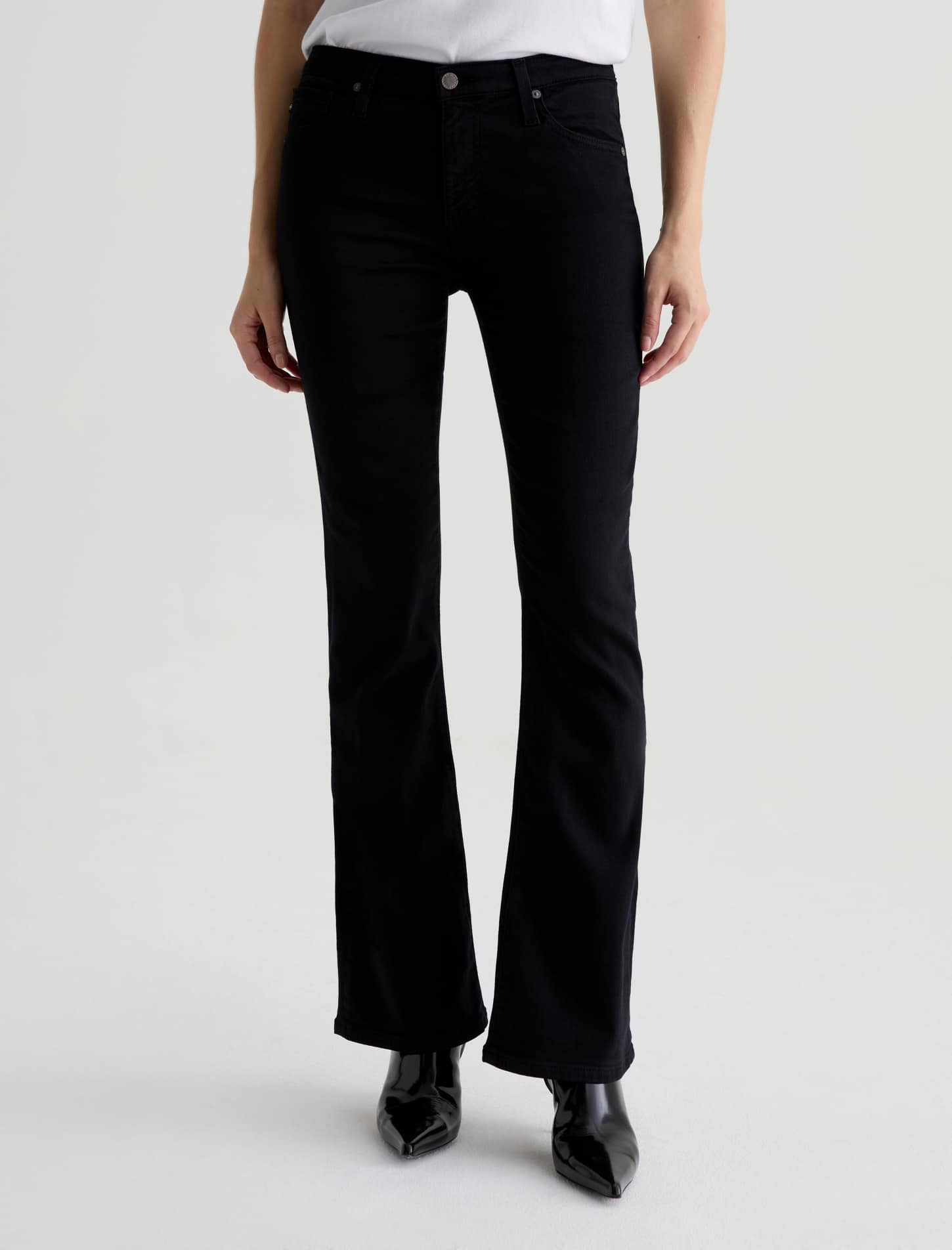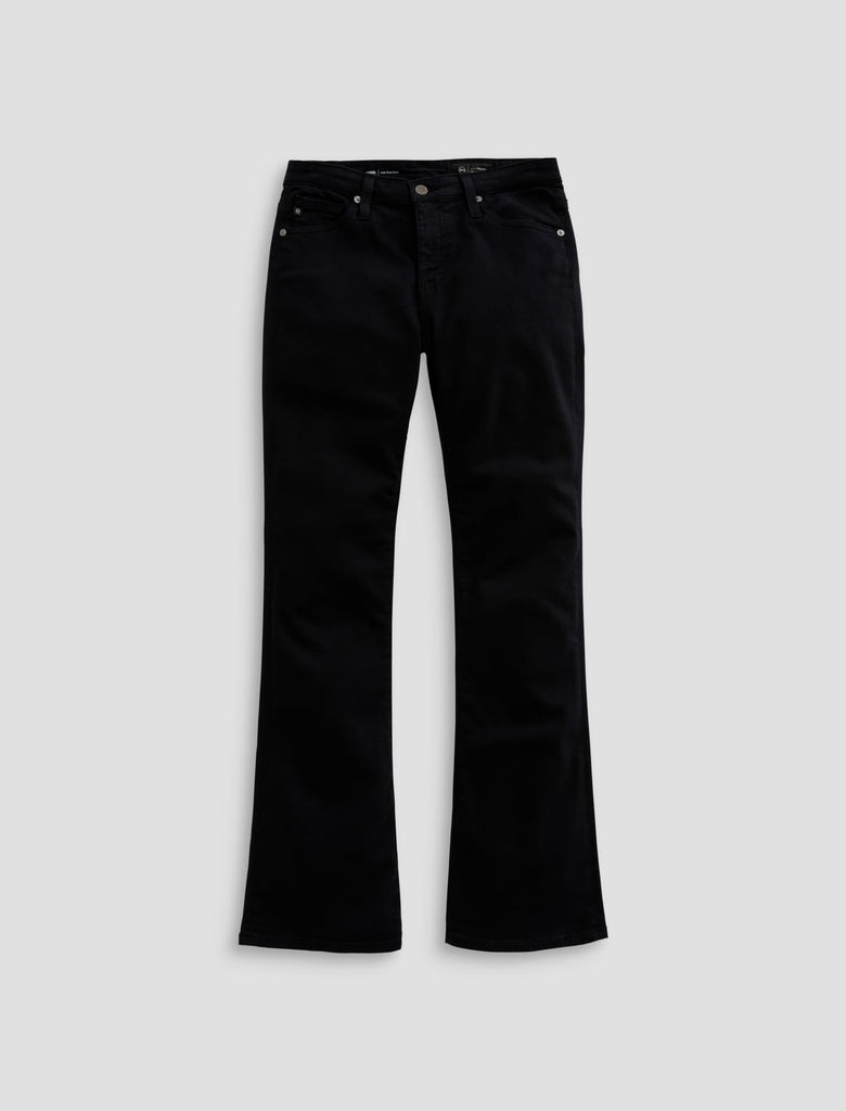 Our Angel low-rise bootcut jeans have a subtly flared silhouette. Done in a rich, saturated shade of black, this pair is designed in 10.25 oz. Cloud Soft Stretch Denim. This exclusive AG fabric has special left-hand twill construction that allows the yarns to gently relax and untwist for a luxe, supple feel. It's designed to get even softer the more you wear it.