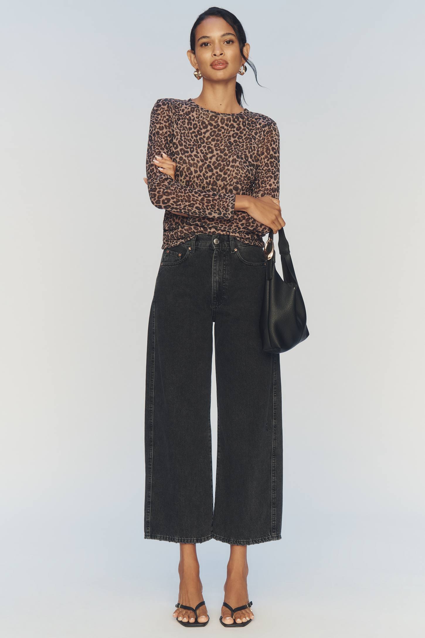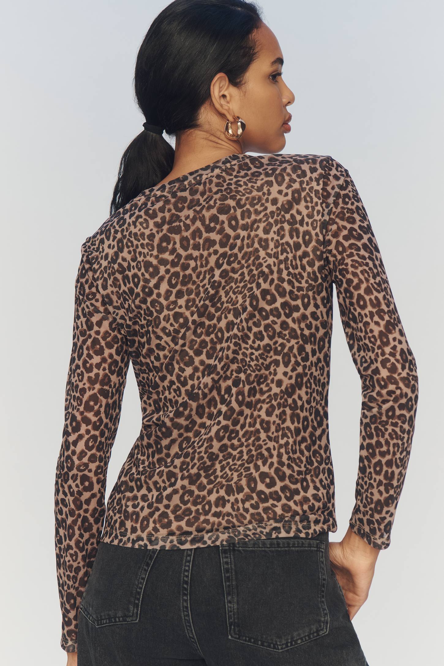 This long-sleeve mesh top features a crew neckline and a lined bodice for comfort. Designed with a relaxed fit, it is crafted from sustainably sourced materials.