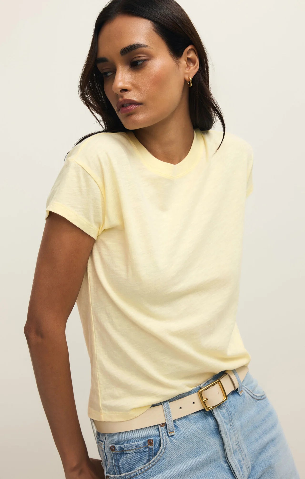 This Essential tee is a must-have in every closet! This casual yet versatile top is great for wearing year-round and looks so good with your fave pair of jeans for an effortlessly cool look.