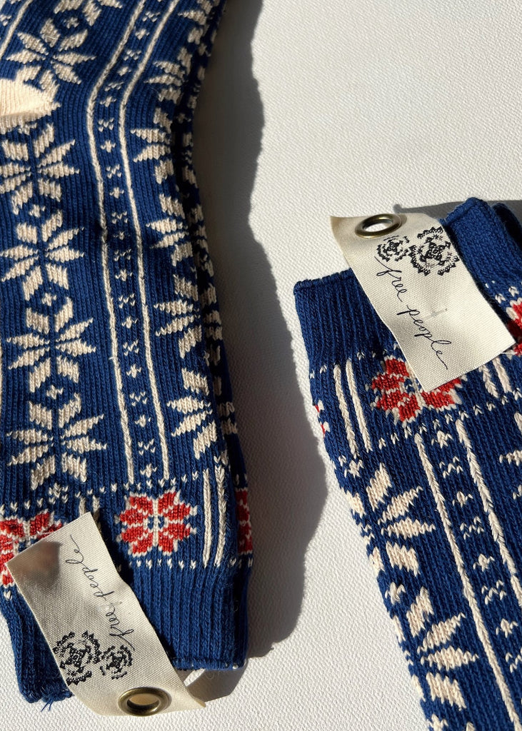 Features: Ribbed knit fabrication, heart motifs; cut-out accents, thick, scalloped cuffs