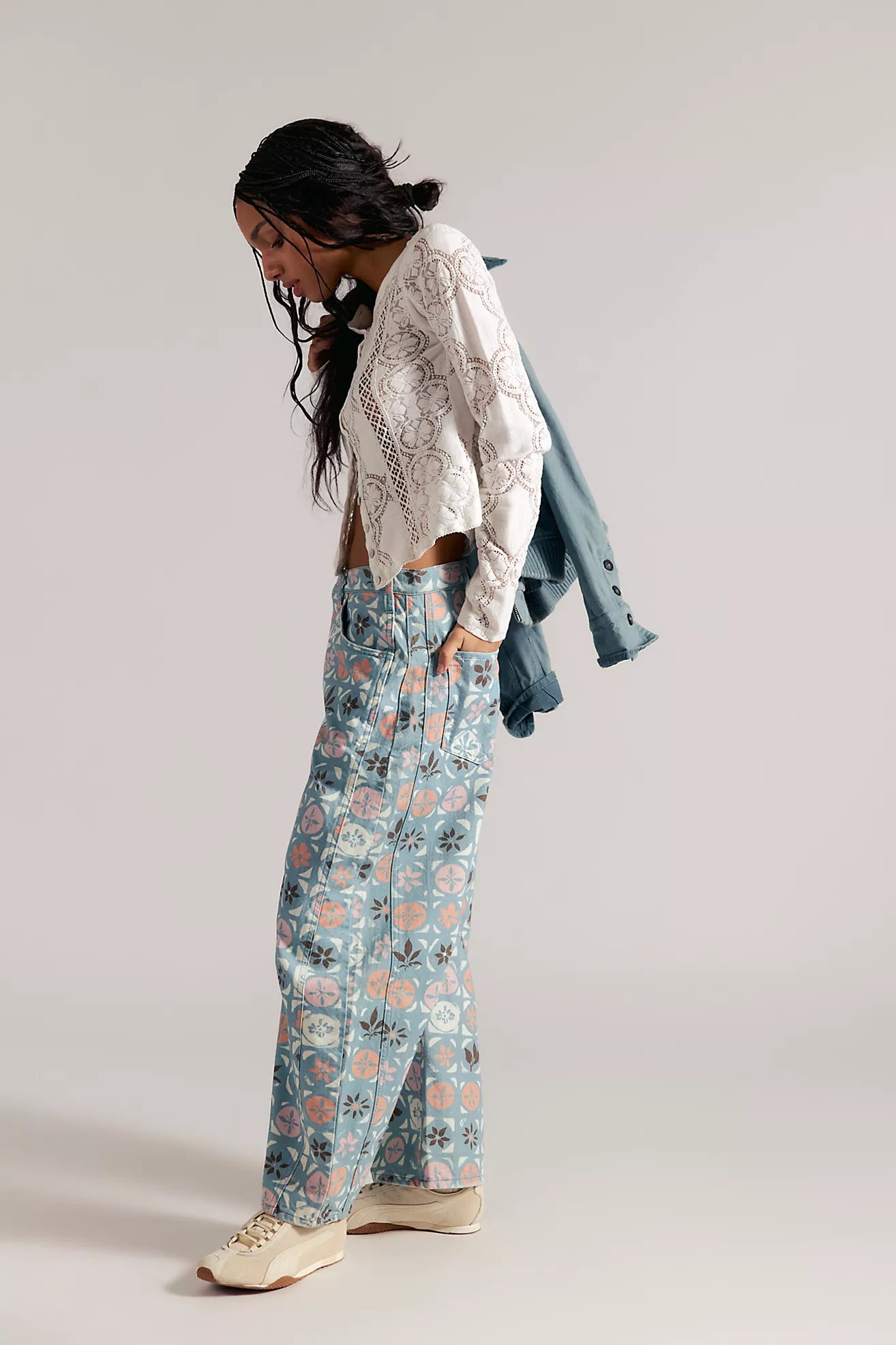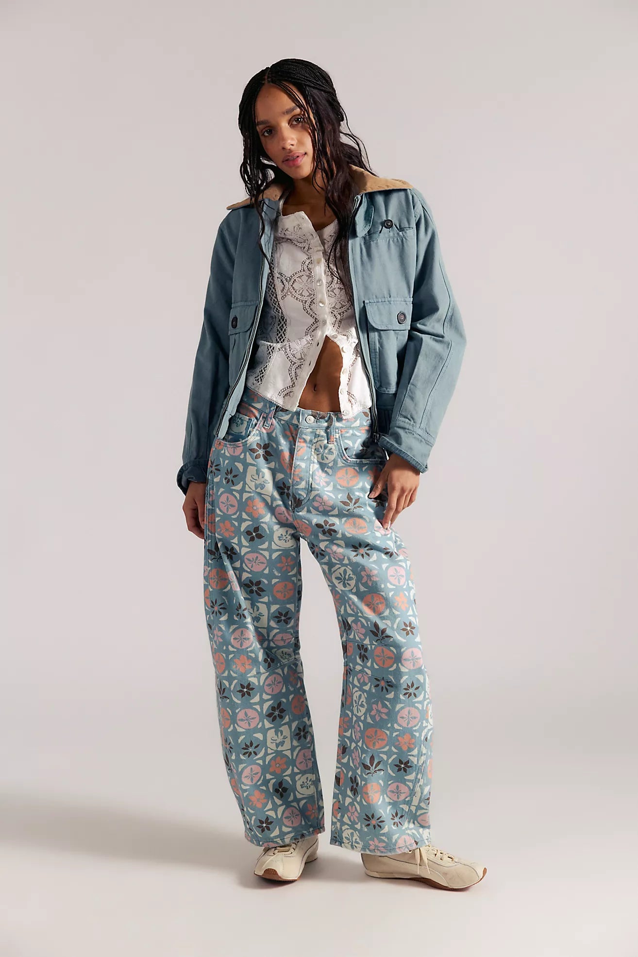 Our most-loved barrel jeans from the We The Free collection, now featured in a playful printed fabrication.