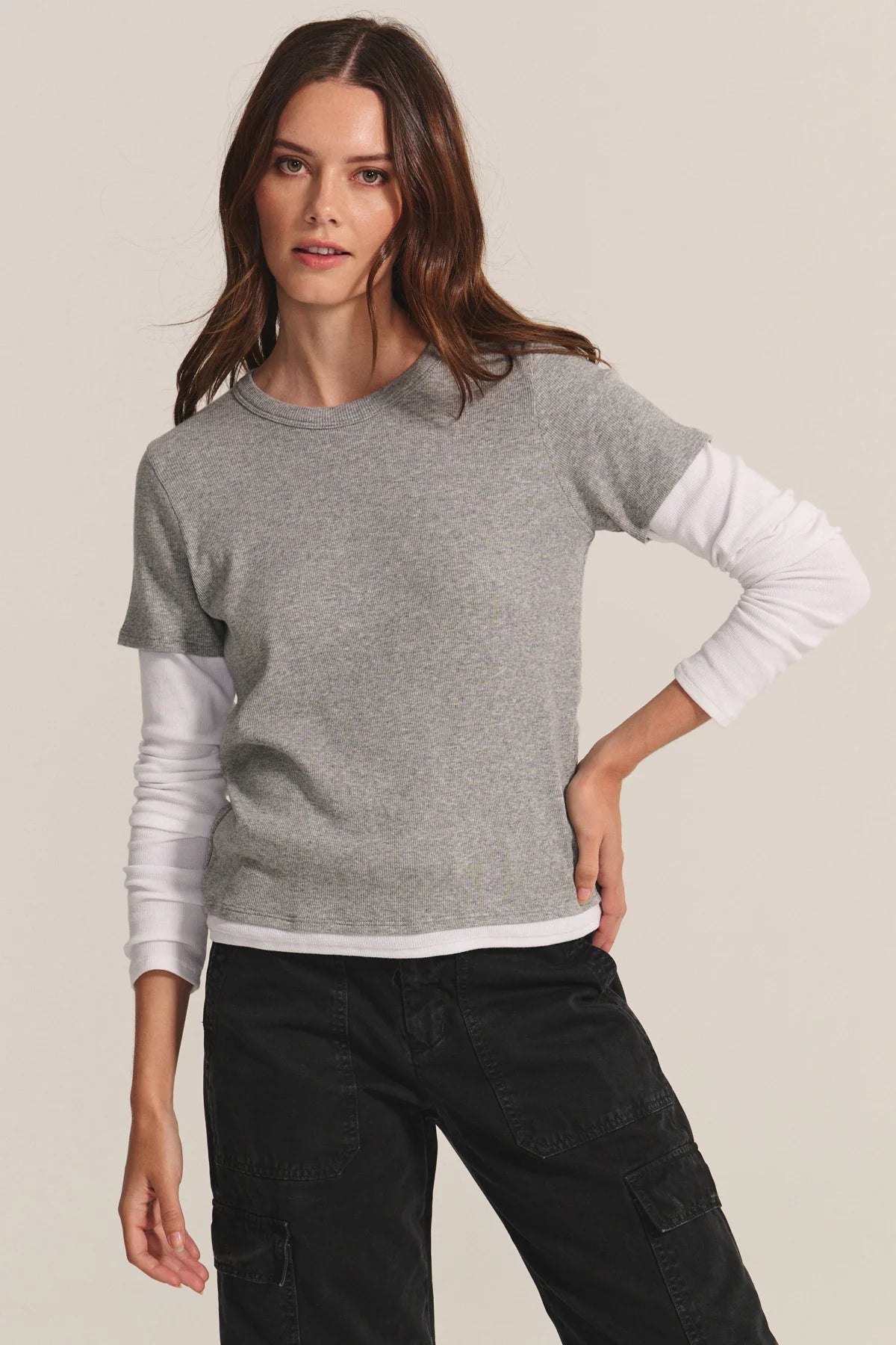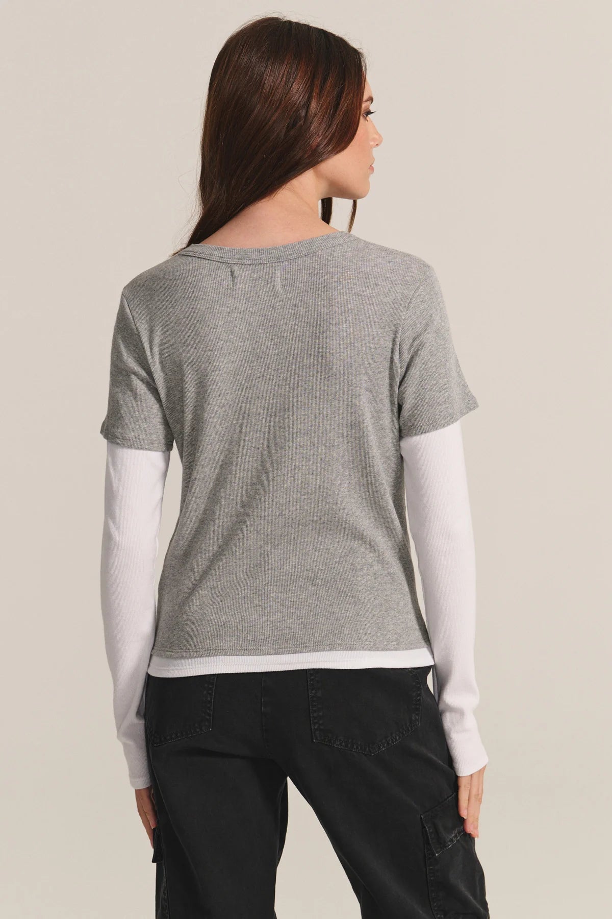 Crafted from soft modal rib, this tee features contrasting sleeves and hem for an on-trend double-layered look. Designed with a classic crew neckline and comfortable stretch, it’s a versatile staple that adds subtle dimension to your everyday rotation.