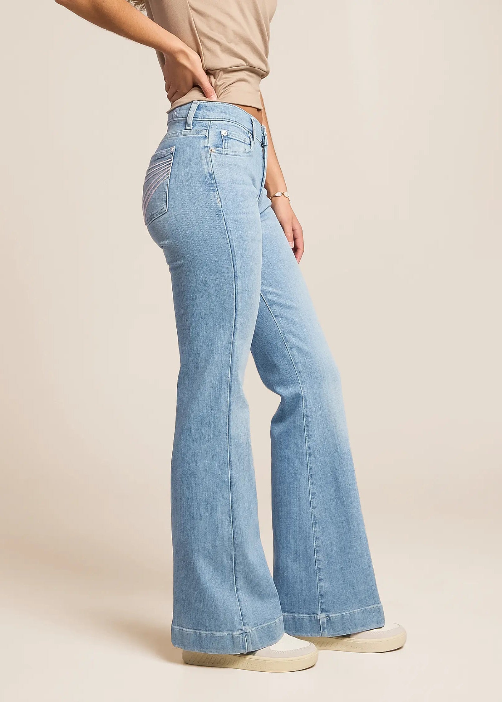 Fits like: A mid rise flare that’s snug through the waist and hips before falling into a subtle flare for a long, lean silhouette. Crafted with a tailorless inseam for an effortlessly perfect length.