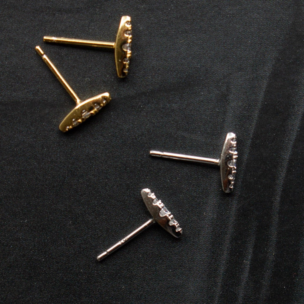 Elegant elliptic bar stud earrings adorned with sparkling crystal accents. These refined studs offer a modern geometric silhouette with timeless sophistication, perfect for everyday wear or special occasions. The crystal embellishments catch the light beautifully, adding subtle glamour to any look.