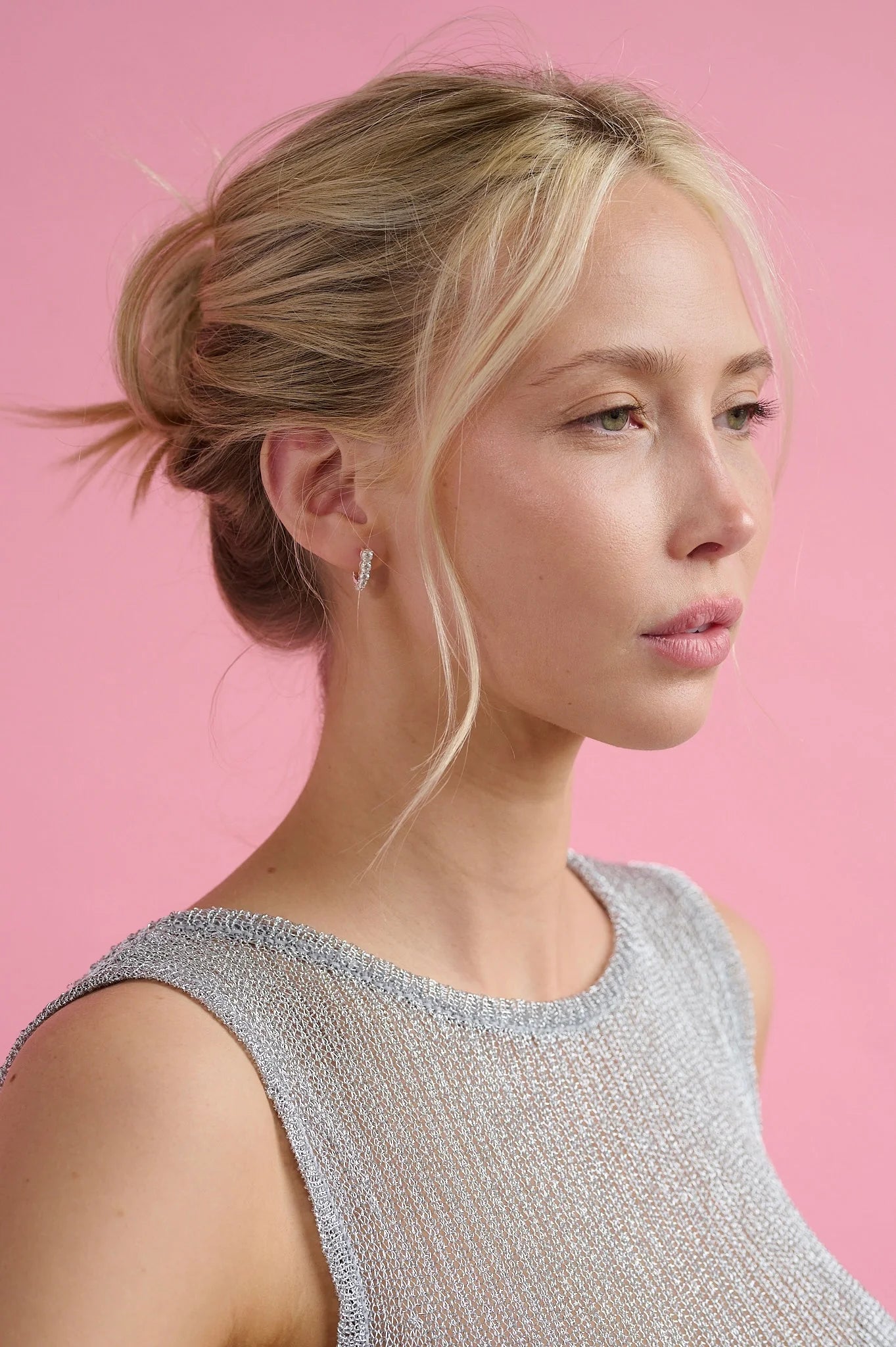 Delicate huggies that catch the light with every turn of your head with cascading crystals. These earrings deliver maximum impact, perfect for layering or wearing solo. A sparkle that speaks volumes.