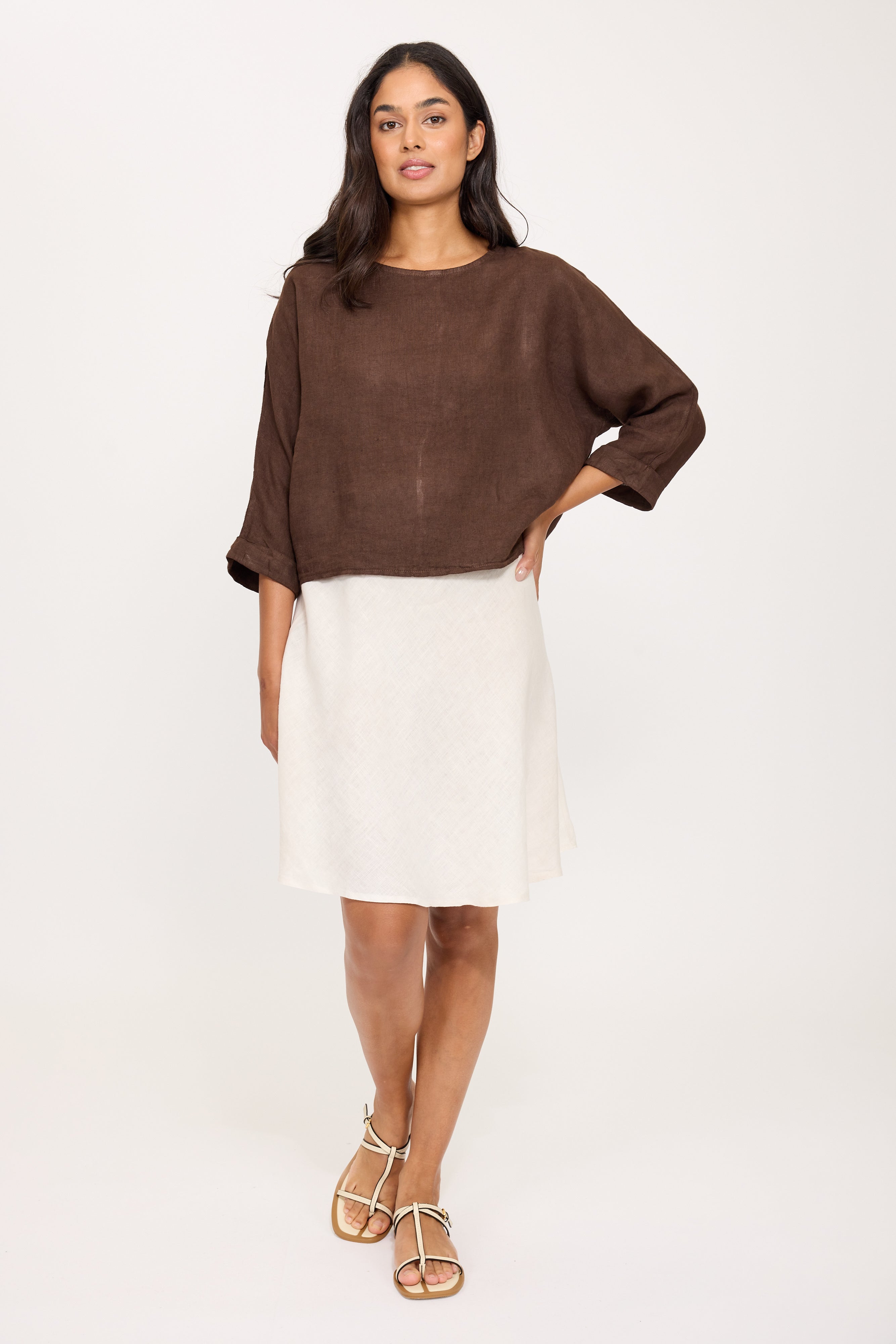 Effortless elegance meets comfort in this Manhattan 3/4 Sleeve Top. Crafted from breathable linen, the relaxed silhouette drapes beautifully while the flattering V-neckline adds a touch of sophistication. Perfect for warm weather styling, this versatile piece transitions seamlessly from casual days to evening outings. The flowing fabric keeps you cool and comfortable, making it an essential addition to any wardrobe.