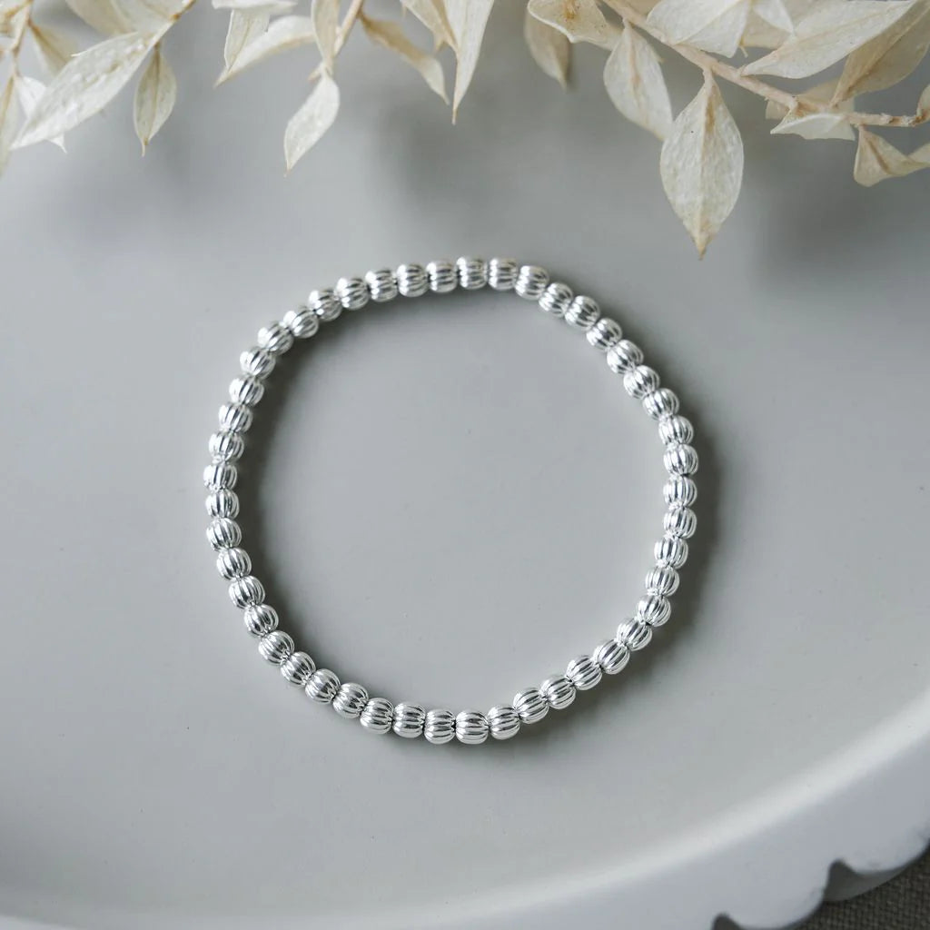 She's a stunner, stretch bracelet (so it's easy to get off and on) with a chunkier feel and look. Such stunning detail on every little bead. Great on its own or add it to your stack!